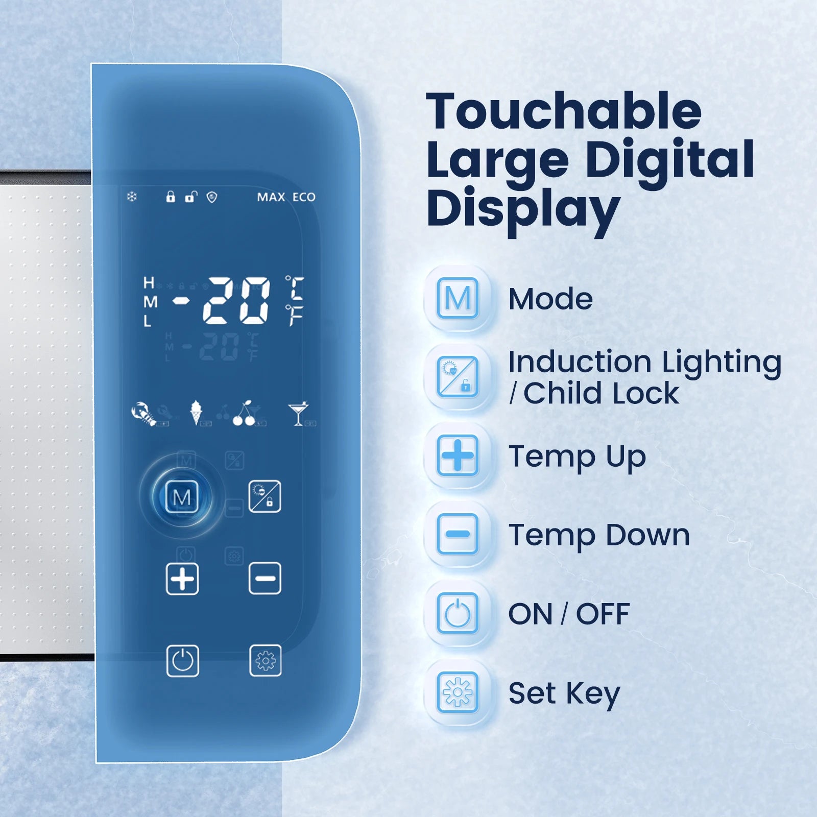 2. Large Display: The large numerical panel display allows for convenient temperature control.