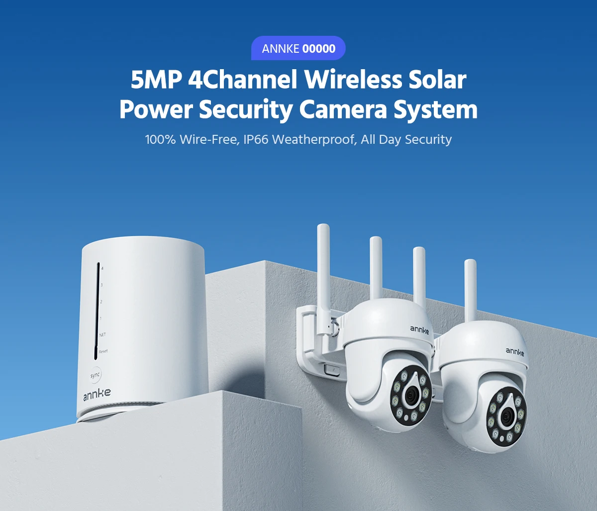 ANNKE 5MP Wireless Home Camera System 2PCS Cam Kit Security System Solar Cameras PIR Human Detection 4CH Dual wifi Homebase