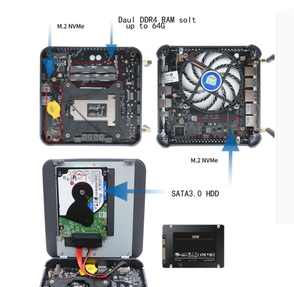 Gaming Mini PC Intel Core i9 9880H 9980HK i910880H Desktop Computer Windows11 2*DDR4 NVMe HDMI DP WiFi BT Dual LAN Fan Micro NUC