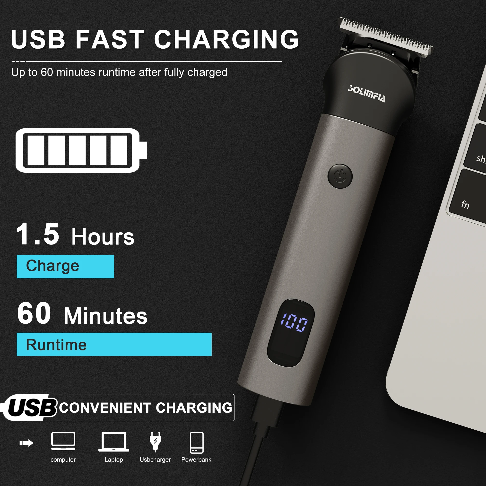 Function: wet haircut,dry haircut,Washing knives under water,Fast Charging,Charging indication