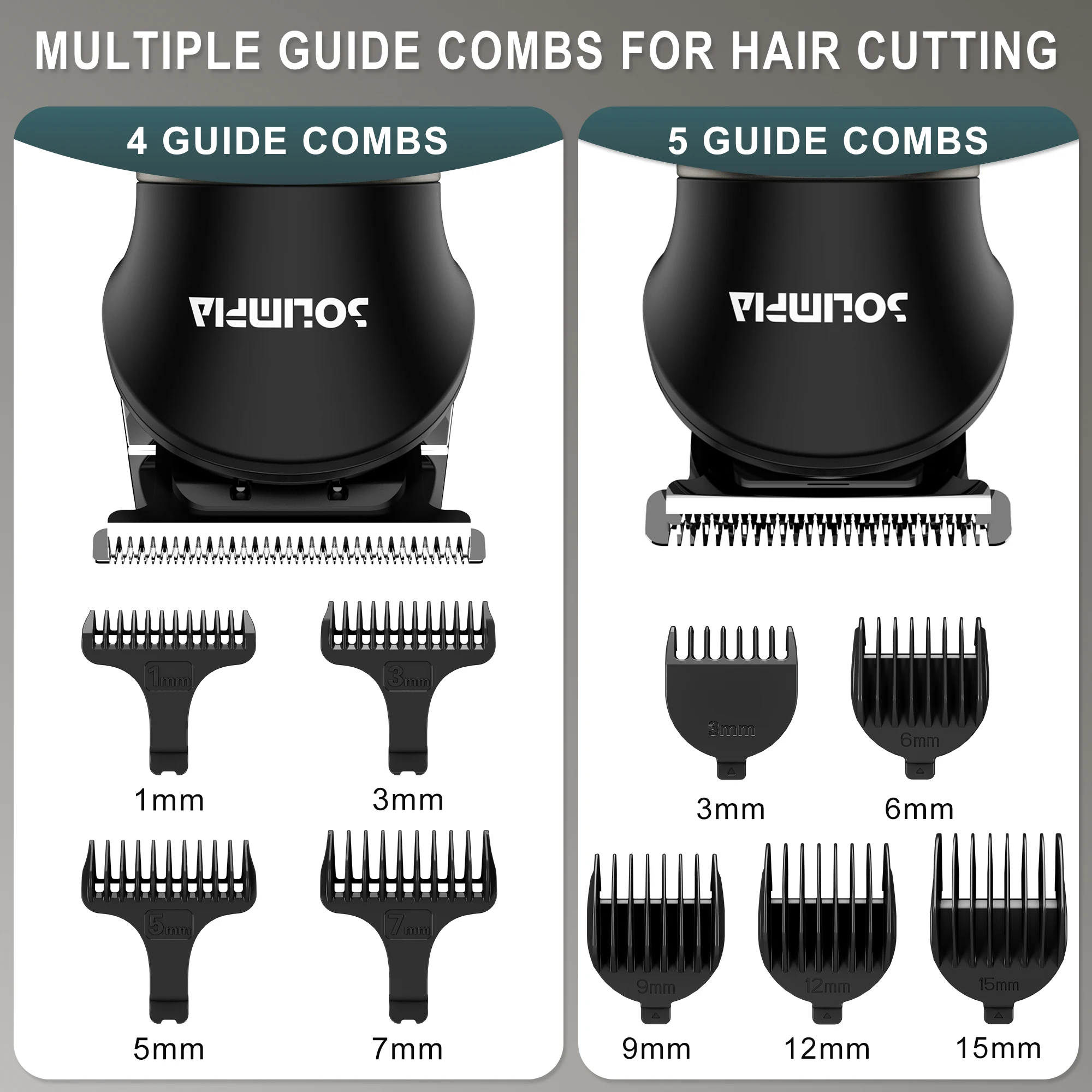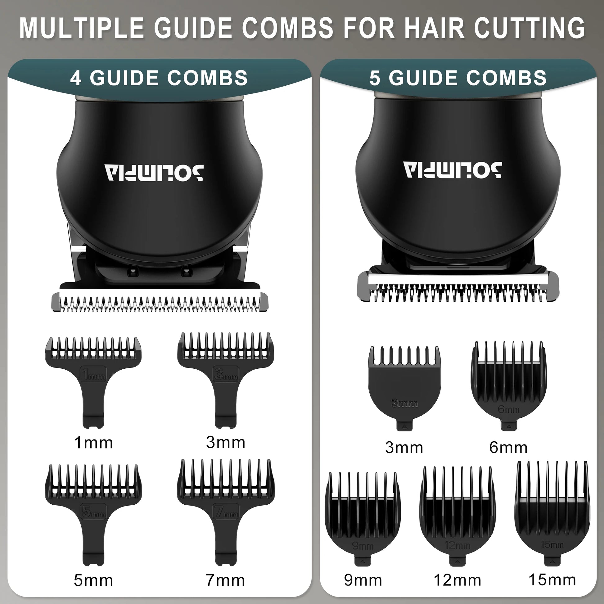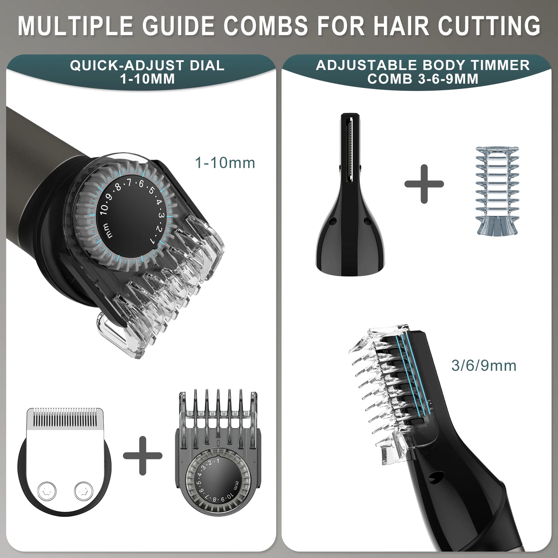 3.Complete set of limit combs: 1mm,3mm,5mm,7mm, 5 standard lengths, 3/6/9/12/15mm. There are a variety of hairstyles and lengths to choose from, so you can customize any hairstyle you want