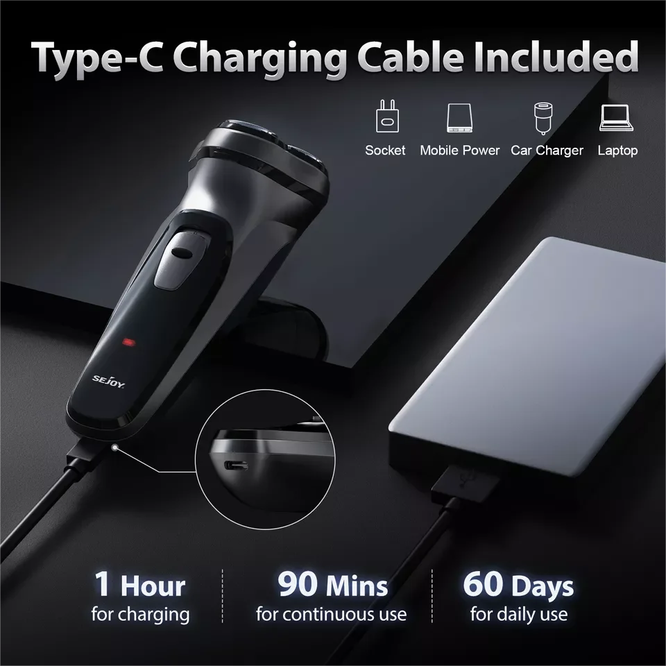 SEJOY Rechargeable Wet & Dry Use Electric Shaver Pop-up Hair Trimmer Rotary Shaving Machine Razor