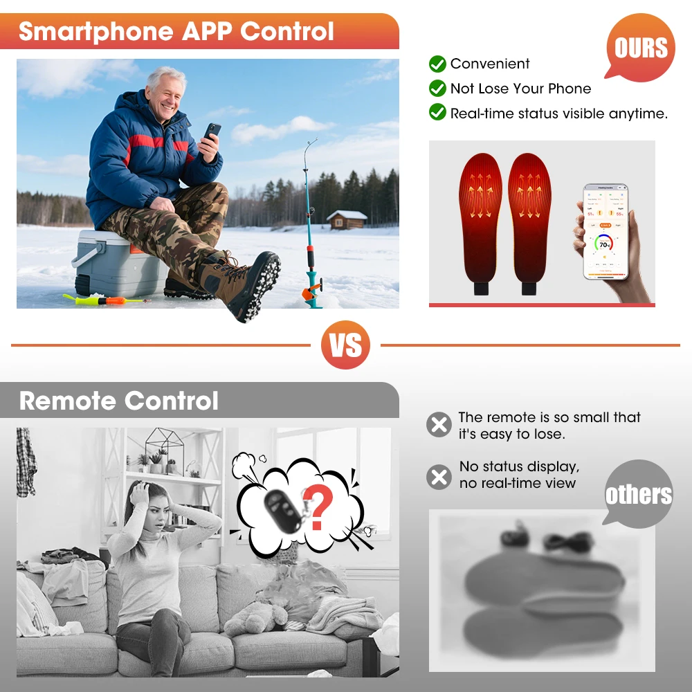 Smart Heated Insoles for Shoes Rechargeable Foot Warming Pad with APP Control Adjustable Heating for Warmer Winter Outdoor