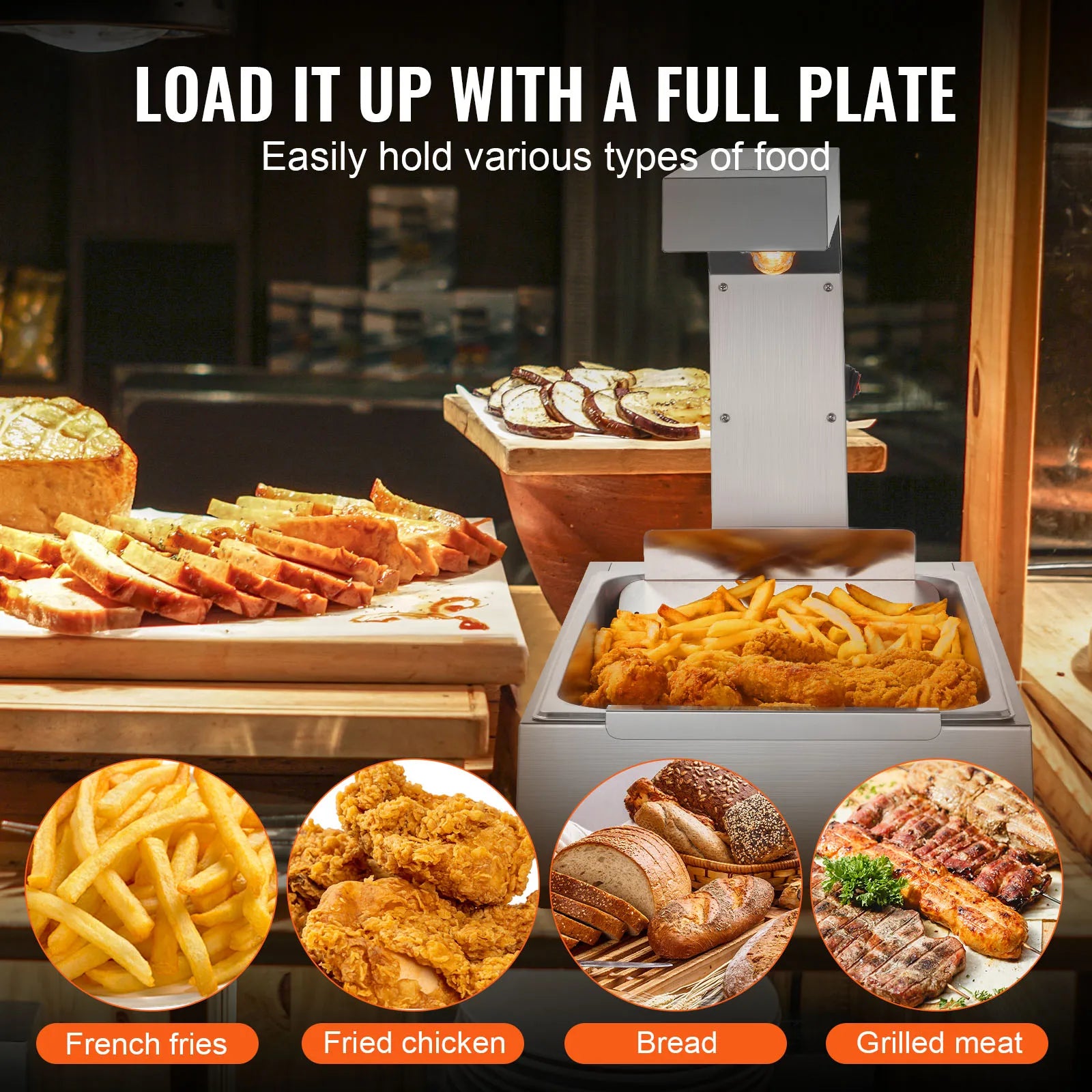 SucceBuy French Fry Food Warmer Commercial Food Heating Lamp Electric Stainless Steel Countertop for Buffet Kitchen Restaurant