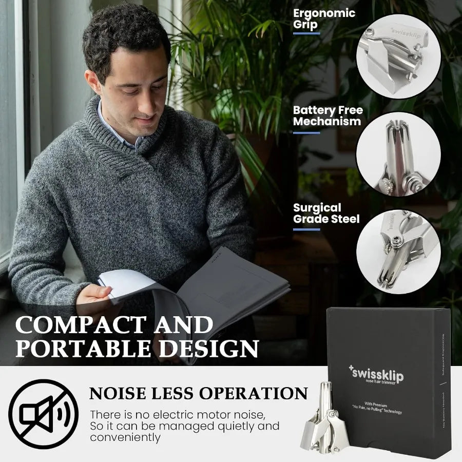 Swissklip Human Power Nose Hair Trimmer for Men Manual Nose Hair Trimmer for Women I Stainless Steel Ear Hair Remover for Men W