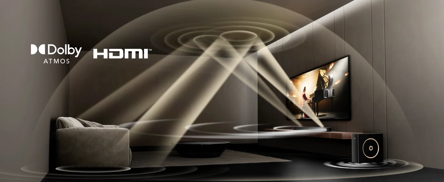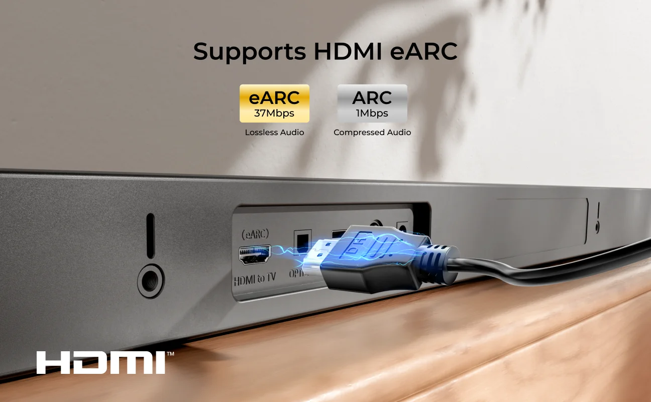 Unlock uncompressed Dolby Atmos sound through HDMI eARC, delivering up to 37Mbps bandwidth for a richer, more immersive audio experience. With CEC control, power, volume, and input automatically sync with your TV for seamless, unified operation.