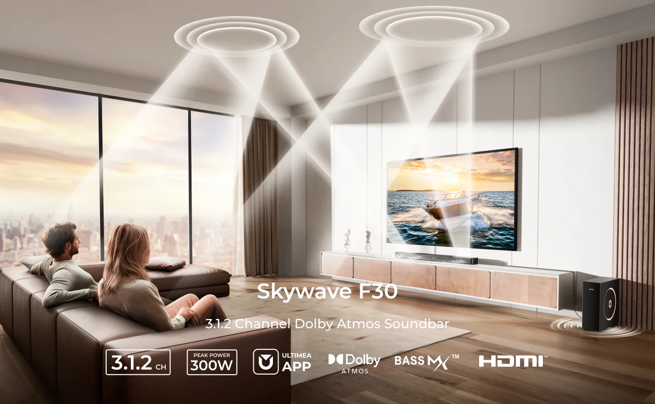 ULTIMEA Skywave F30 Soundbar 3.1.2ch 300W Dolby Atmos Soundbar, with 5.25'' Wired Subwoofer, Home Theater for TV, APP Control