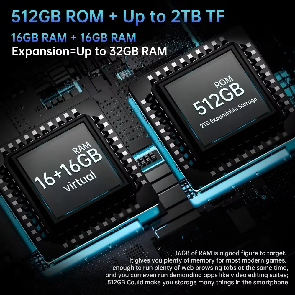 Up to 32GB RAM(16+16GB virtual) ,512GB ROM |